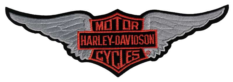 Oranger Harley-Davidson Aufnäher mit silbernen Flügeln.EMB329065 Größe ca. 40cm x 12cm