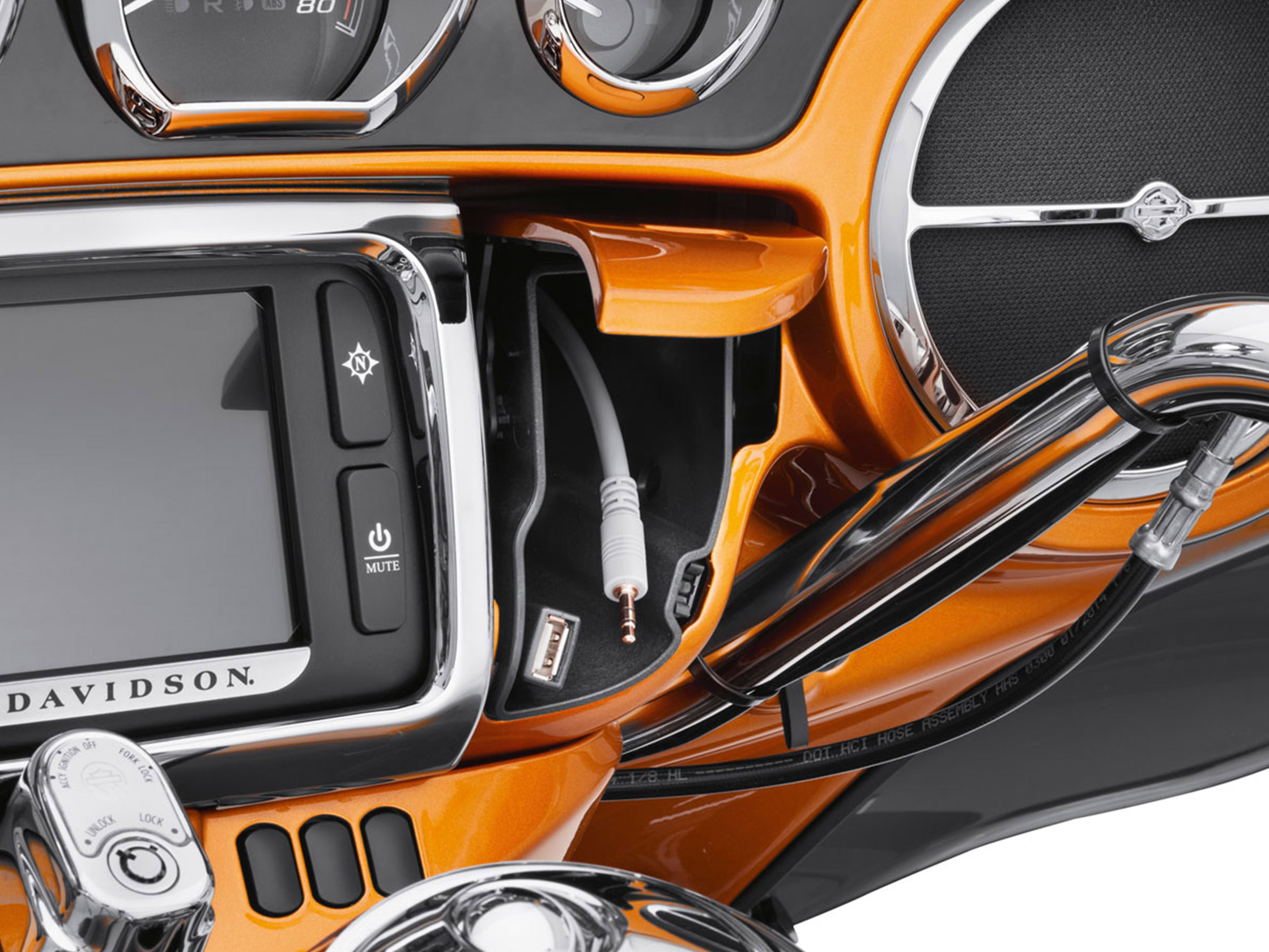 Ergänzen Sie Ihre mit einer Boom!T Box ausgerüstete Harley-Davidson® durch weitere Optionen für Musik- und Informationsquellen. Das Kabel aktiviert GPS-Einheiten, Telefone und Musikplayer, die mit einem 3,5 mm Ministecker ausgerüstet sind und so ihr Signal direkt in den Boom! Box Empfänger einspeisen können. Die Kabellänge erlaubt eine Verlegung zur an der Verkleidung montierten Jukebox, zum Handschuhfach oder hinter die Verkleidung zu einer GPS-Halterung.Verwendung
