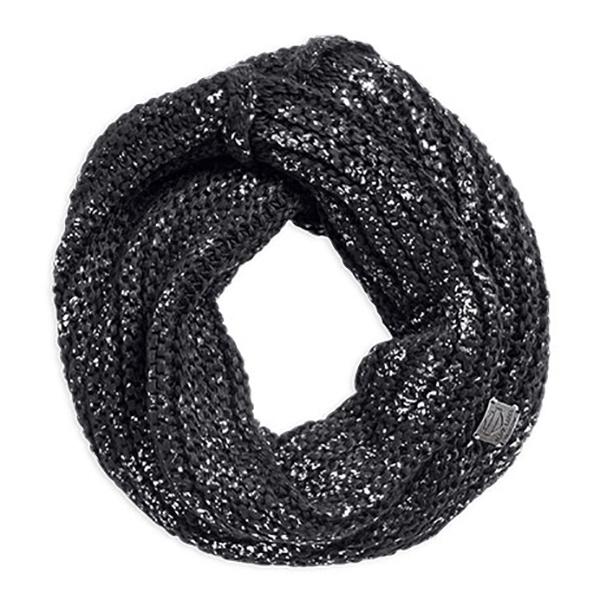 Schwarz gestricktes Garn mit Folie bedruckt. Wird einmal um den Hals des Trägers gewickelt. Antike Metall Black Label-Plakette.97774-15VW, 100% Acryl, Einheitsgröße