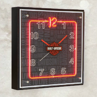 Mach deine Wohnung schöner mit dieser einzigartigen H-D Wanduhr, mit von Hand gebogener, roter Neonleuchtröhre eingefasst.12 "Bar & Shield Logo in der Mitte.Quarzuhrwerk(wird mit AA-Batterien betrieben,nicht im Lieferumfang), Aus-Schalter, Neon-Netzteil / Trafo.HDL-16630 Größe ca. 38,7cm x 38,7cm x 8,9cm