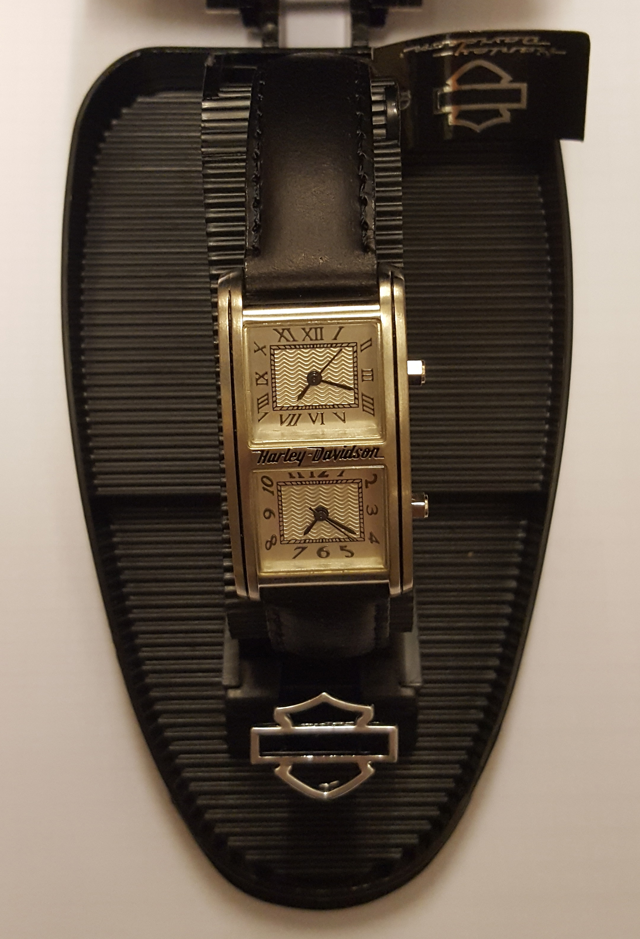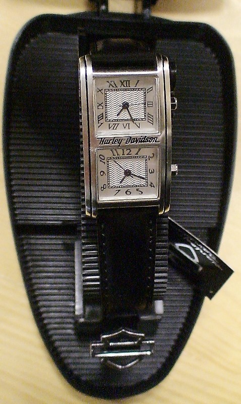 Harley-Davidson Damenuhr mit zwei Anzeigen und schwarzem Lederarmband.HDL112