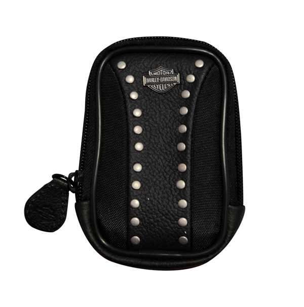 Kameratasche aus Stoff mit Lederapplikationen.Zum verschließen ein großer Reißverschluss an der Oberseite.06294FG Größe ca. 8cm x 12cm