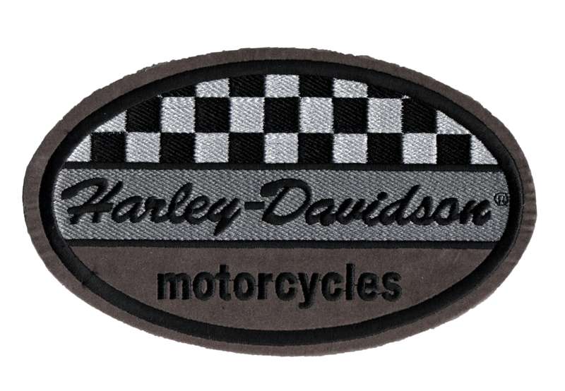 Ovaler Aufnäher im Race-Style mit Harley-Davidson Schriftzug.EMB471803 Größe ca.17cm x 10cm