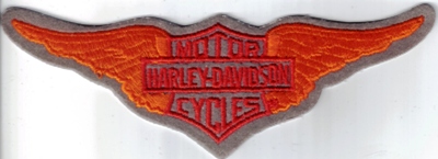 Klassischer Aufnäher mit orangen Flügeln und Harley-Davidson Logo in M.EMB329383 Größe ca. 15cm x 5cm orange